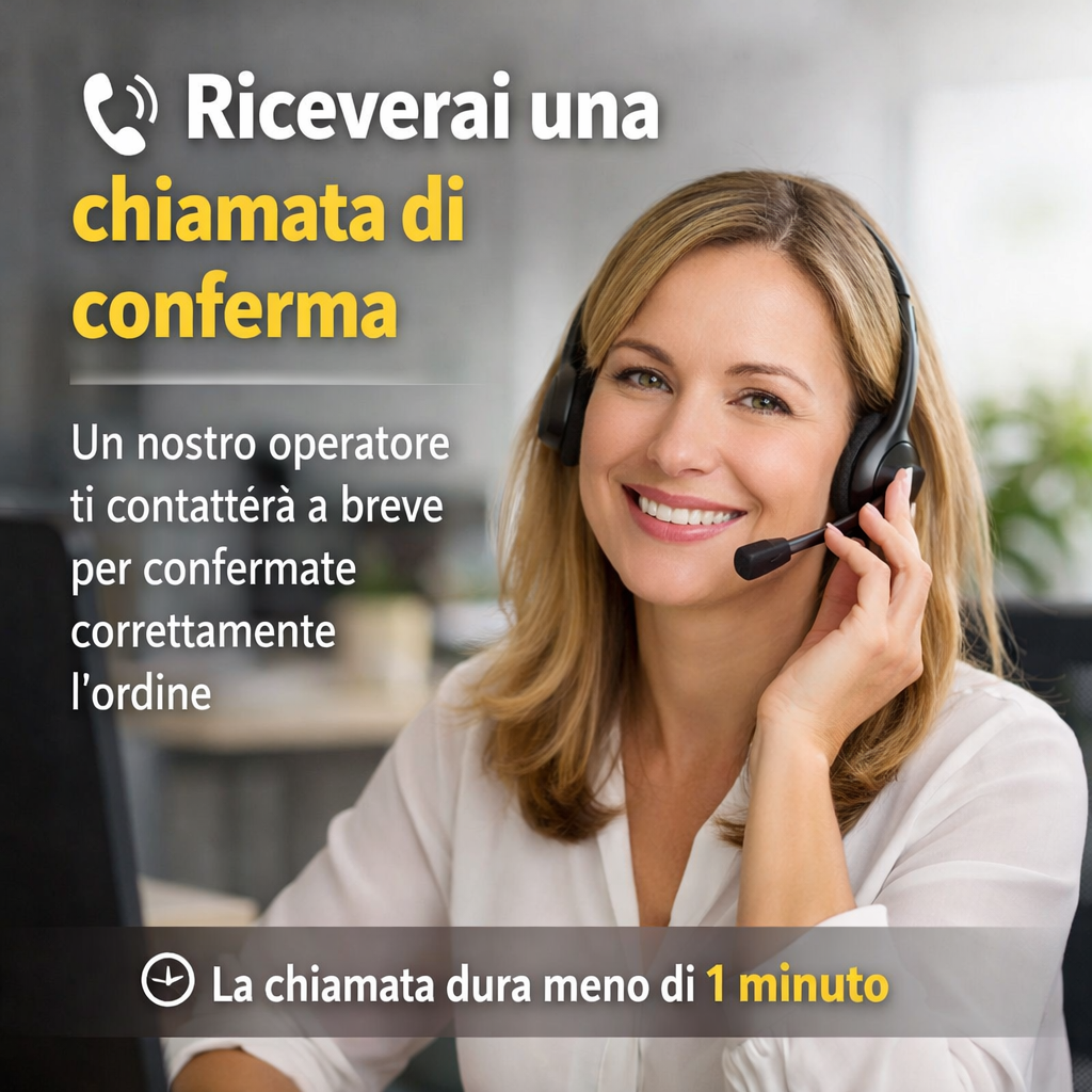 → Per non perdere lo sconto e per ricevere l’ordine a casa tua il più presto possibile, ti chiediamo la gentilezza di rispondere al telefono così confermiamo l’ordine e facciamo partire subito la spedizione.